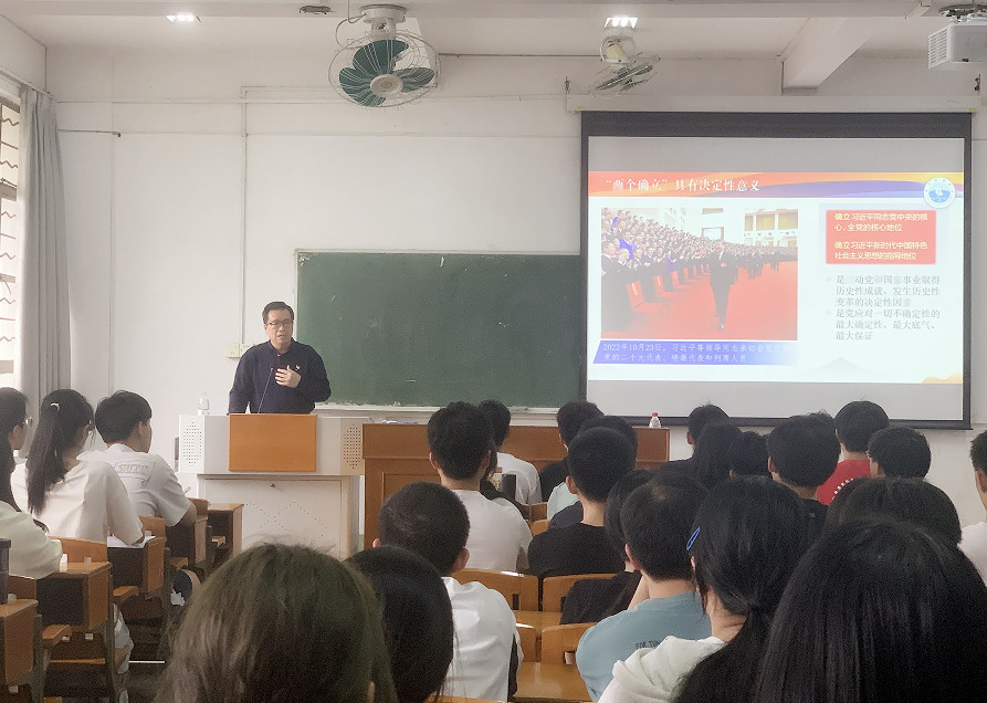 苏书记将这节思政课的内容分为两部分。第一部分是深入学习,准确把握党的二十大精神。苏书记抓住重要节点,对过去五年的重大成就、新时代10年的伟大变革、中国式现代化、前进道路上的风险与挑战等党的二十大报告主要内容进行了概述和深入解读,引导同学们正确理解党的二十大精神。叮嘱广大青年牢记:坚持党的全面领导是坚持和发展中国特色社会主义的必由之路;中国特色社会主义是实现中华民族伟大复兴的必由之路;团结奋斗是中国人民创造历史伟业的必由之路;贯彻新发展理念是新时代我国发展壮大的必由之路;全面从严治党是党永葆生机活力、走好新的赶考之路的必由之路。