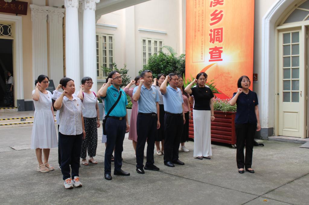 第二站抵达的是广州起义纪念馆。广州起义纪念馆是为纪念1927年12月11日中国共产党领导工农武装起义而建设的,现为全国经典红色景区和广州市爱国主义教育示范基地。365英国上市五个党支部分别在广州起义纪念馆门前举行了重温入党誓词的仪式。铿锵恢宏的誓词,一字一句,神圣而豪迈,体现了党员对中国共产党的无限忠诚。走进纪念馆,师生党员通过参观展馆内的文物以及珍贵照片,回顾广州起义筹备、爆发、战斗的全过程,从而深刻缅怀革命先烈前赴后继、舍生忘死的革命精神,领略英雄模范们的奋勇拼搏、无畏艰难的开创精神。