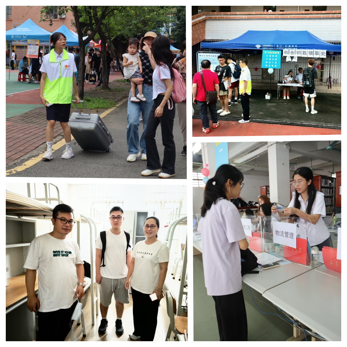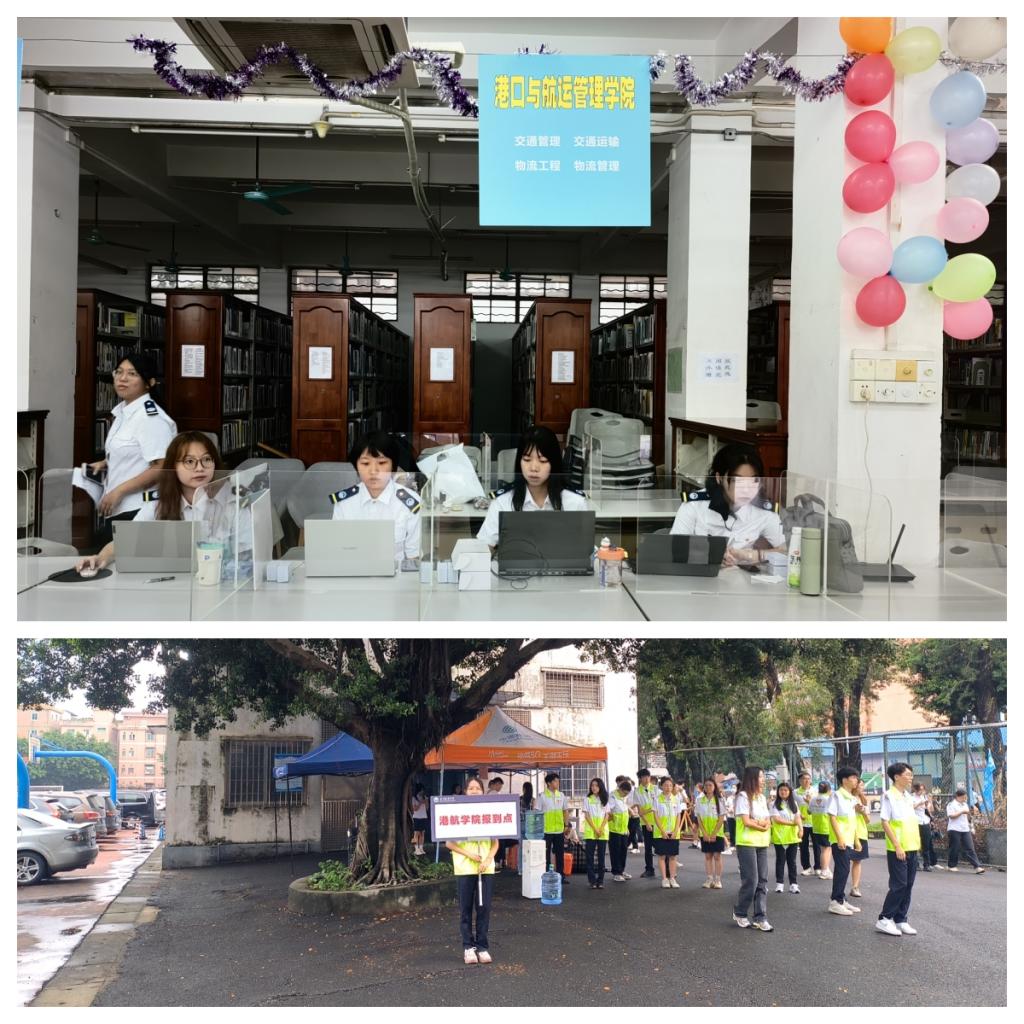 在图书馆大厅,身着海军白校服的港口与航运365英国上市员工工作人员端坐办公桌后面,为前来报到的同学办理报到手续。公司在干训楼、4号楼、5号楼等宿舍楼前设置宿舍钥匙领取处,身穿校服的港航员工工作人员,将宿舍钥匙交给新生。身穿“绿马甲”的港航志愿者奔走在校内外各处,耐心热情地迎接、引导新生及家长,帮忙提拉行李,领到宿舍楼前宿舍钥匙领取处领取钥匙,前往自己的宿舍入住。“绿马甲”穿梭在古香古色的礼堂、图书馆、办公楼、教学楼、干训楼等建筑和亭亭玉立、婀娜多姿的棕榈树之间,行走在公司周边繁华的地铁口、公交站等处,庄穆与灵动、古典与现代交相辉映,形成一道亮丽的风景线。