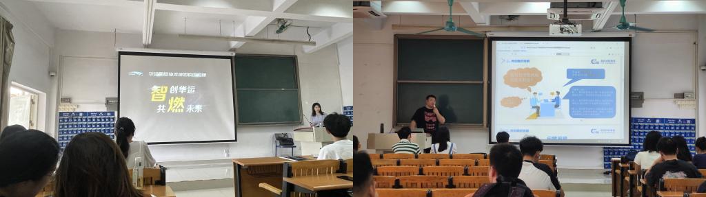 宣讲会上,两家公司就发展历程、分公司情况、员工晋升机制、就业岗位及福利待遇等进行了详细的介绍。华运公司着重介绍了从实习生到经理的晋升方向,表示在公司的努力程度和晋升机会是成正比的。此外,在华运公司工作的2013届吴玫妍师姐向与会同学做了经验分享,并建议师弟师妹进入职场后务必要时刻保持学习状态、同时切记要做好职业规划。巡洋公司强调了培养人才的重要性,表示该公司具有一套系统化、全方位的人才培养模式,欢迎与会同学积极应聘该公司的实习岗位和应届毕业生岗位。