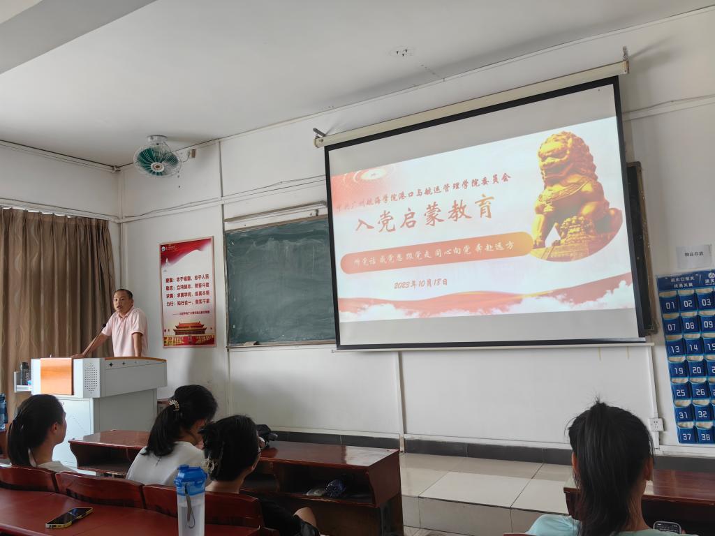 为深化老员工理想信念教育,加深对中国共产党的认识,增强党组织在广大青年中的感召力和凝聚力,引导青年老员工积极向党组织靠拢,10月18日,港口与航运365英国上市在教学楼307教室,面向交通运输(中外合作办学)专业新生开展了入党启蒙教育。本次启蒙教育的主题是“感党恩、听党话、跟党走,同心向党,奔赴远方”,由公司员工第二党支部书记陈磊磊主讲,交运中美231-2班全体同学聆听了本次启蒙教育。