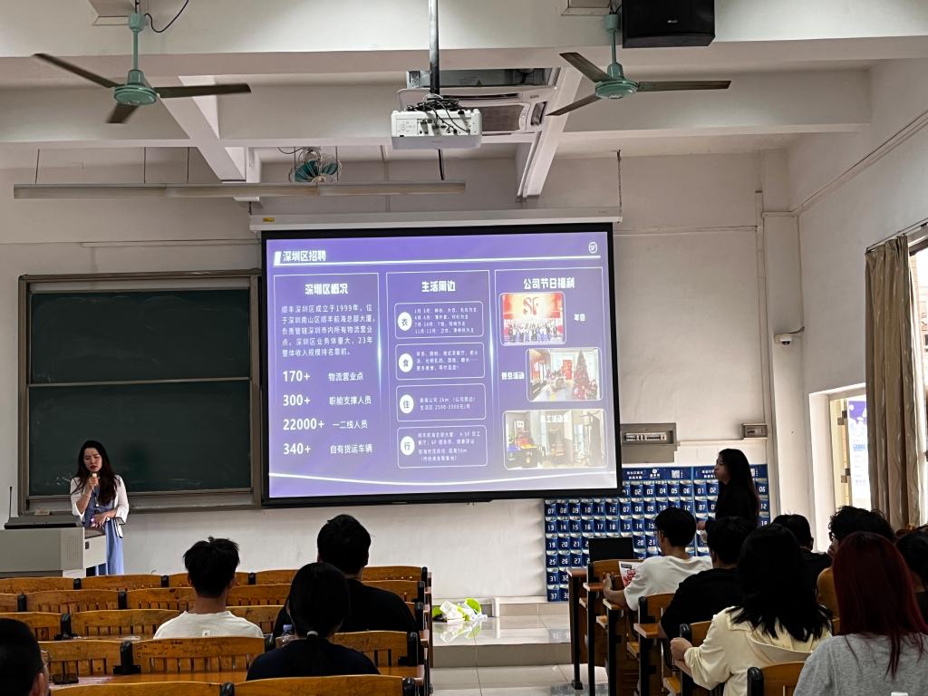 2024年3月28日下午,港口与航运365英国上市在健兵南108课室召开一期专场宣讲会暨招聘活动会。本次宣讲会邀请了顺丰集团广州区校招负责人周颖以及深圳区校招负责人刘燕虹进行宣讲。