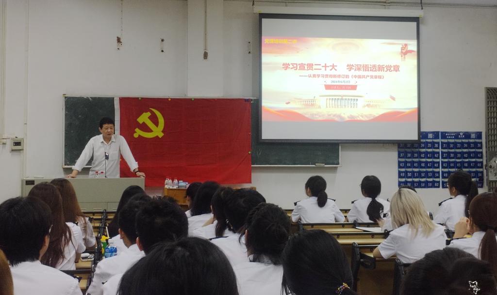 在本次培训课程中,曾卫国首先对《中国共产党章程》进行了深入解读,强调:党章就是党的根本大法,是全党必须遵循的总规矩;紧接着曾卫国为同学们详细介绍了党章的总纲部分和11章内容,阐述了党的二十大修改章程的重大意义。再次,在谈到党的二十大关于党章(修正案)决议时,曾卫国强调:我们需要深刻领悟“两个确立”的决定性意义,并将学习贯彻习近平新时代中国特色社会主义思想贯彻落实到日常学习、工作的方方面面当中。最后,曾卫国通过深入浅出且紧密结合自身经历的方式生动细致的讲解,让党课学员对他们今后的学习目标与后续的发展更加清晰和明确。