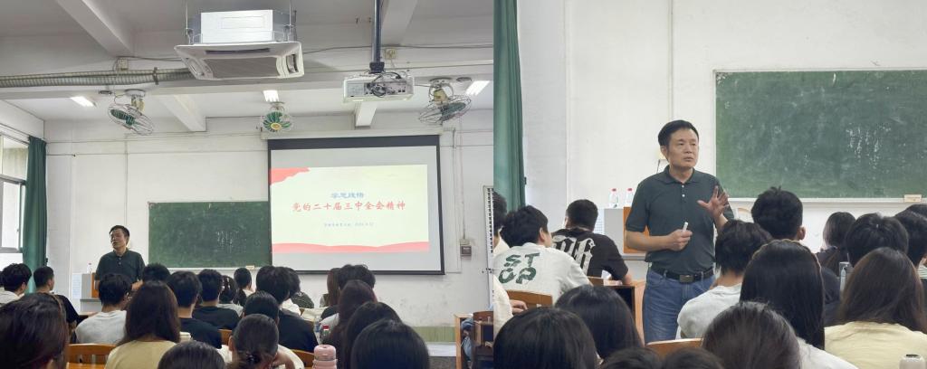 课堂上,贾文武从《中国共产党第二十届中央委员会第三次全体会议公报》的相关内容及《中共中央关于进一步全面深化改革、推进中国式现代化的决定》中的“健全推动经济高质量发展体制机制”、“构建支持全面创新体制机制”等章节出发,领学了党的二十届三中全会的精神,呼吁同学们以党的二十届三中全会精神为思想引领,筑牢理想信念根基,为推进中国式现代化挺膺担当,努力成为堪当民族复兴大任的新时代广航青年。