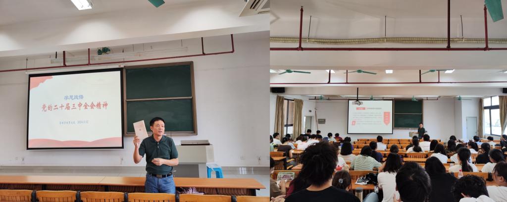 为全面深入学习贯彻习近平新时代中国特色社会主义思想和党的二十届三中全会精神,做好新生思政教育,增强员工使命担当,海事法律与交通公司党委书记贾文武于2024年11月12日分别为黄埔校区和琶洲校区(凤浦书院)的2024级300余名新生讲授了“思政第一课”。