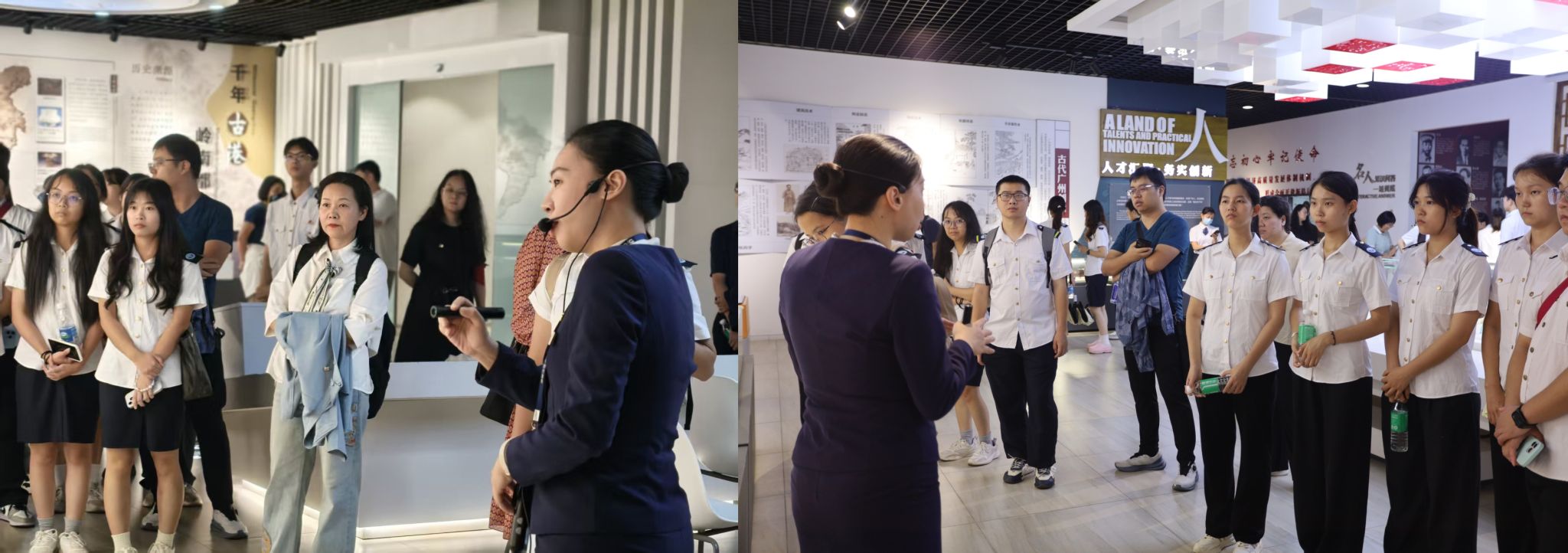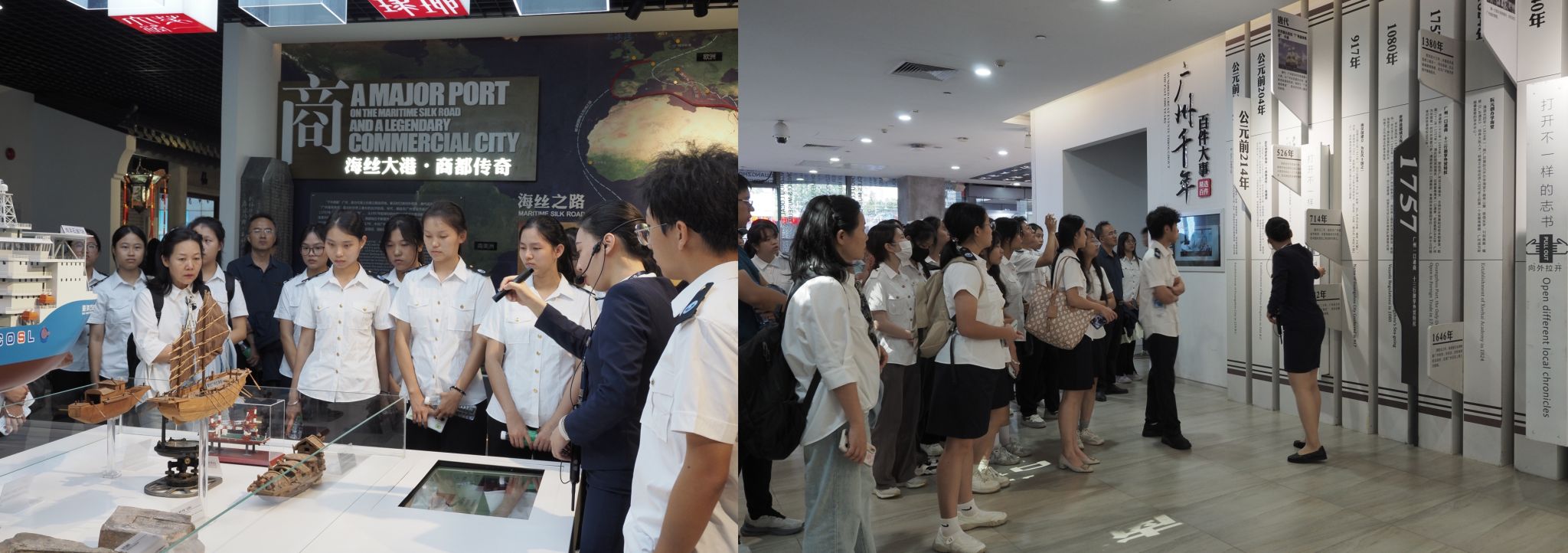 展馆内“方志广州扬长金谷”主题展区同样让师生们受益匪浅。从秦代番禺城的建制雏形、宋代“三城并列”的城市格局,到“东山少爷、西关小姐”的人文印记,再到广州塔等现代城市地标与粤港澳大湾区“9+2”发展蓝图,一幅幅跨越千年的城市图景,让师生们全面梳理了广州从千年商都到国际都市的发展脉络,进一步增强了公司师生对城市文化的认同感与自信心。