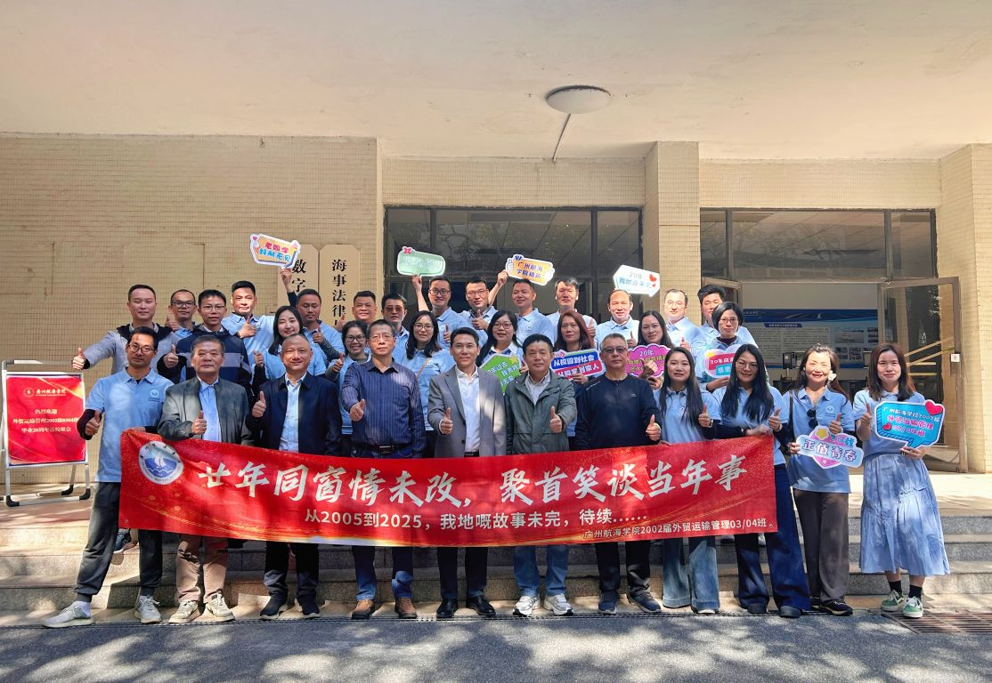 全力协助20周年员工返校聚会。11月29日,2002届外贸运输管理03/04班员工迎来毕业20周年重聚。公司在B2航运楼205会议室设立专属接待点,师生围坐座谈,追忆课堂求学、码头实训的青涩岁月,畅谈行业发展与人生感悟;随后共同重游校园,探访承载青春记忆的教室与实训场,在北区足球场开展互动竞技,重拾同窗默契。现场悬挂“廿年同窗情未改,聚首笑谈当年事”的横幅,定格下这份跨越二十载的深厚情谊,相聚瞬间被悉心记录,为员工留存珍贵回忆。