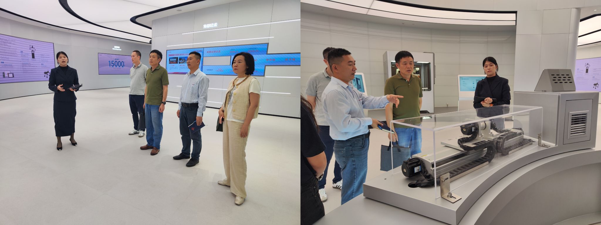 在企业党总支书记梁振锋陪同下,贾书记一行实地参观公司展厅,详细了解企业发展历程、最新机器人科技成果及产业发展情况。